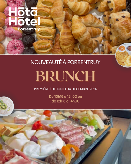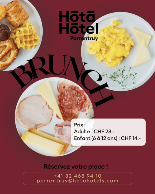 Un brunch entre amis, en famille ou juste pour vous faire plaisir ? L'Hota Hotel Porrentruy vous attend pour partager ce moment convivial !